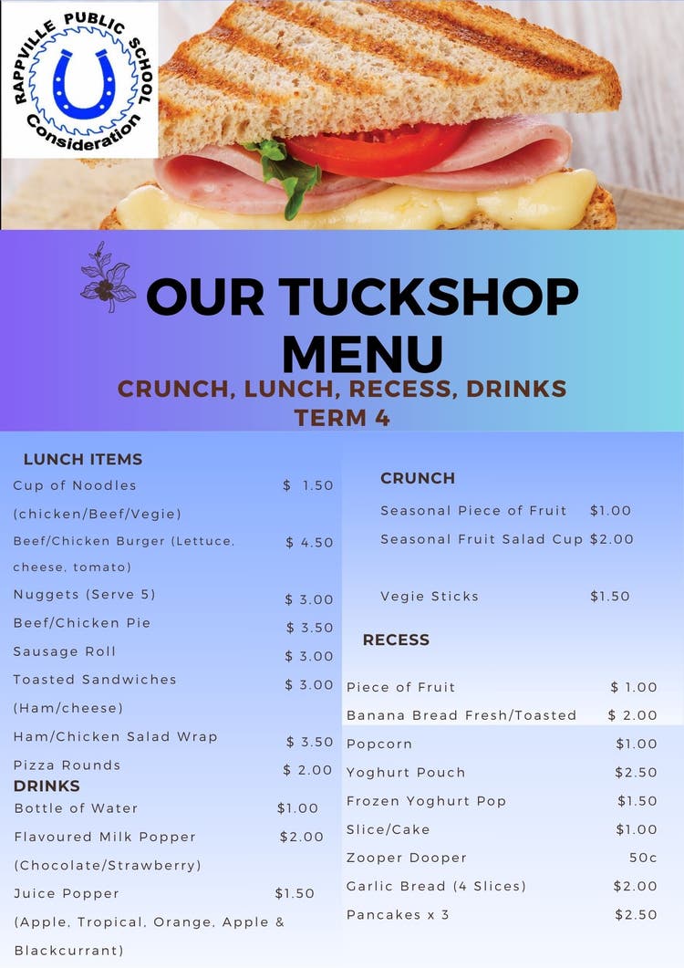 Explore our school tuck-shop. View our menu, tuck-shop opening times and learn how to order.